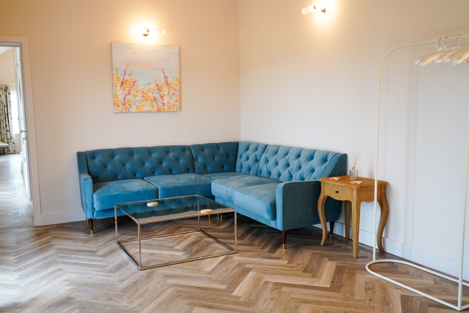 With the happy couple in mind, The Cow Shed includes one twin room (can be made into a zip and link superking) and The Honeymoon Suite.   The Honeymoon suite has the most spectacular views out to sea with an ensuite bath and shower room.  The Dressing Room has been designed for the morning of the big day, spend as much or as little time as you like getting ready whilst enjoying the space with your wedding party.  All the windows overlook the wonderful Traeth Lligwy, with an outdoor sofa and table set where you can sit and enjoy the view with a glass of champagne or a cup of tea.