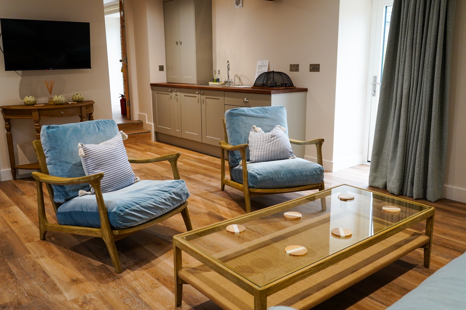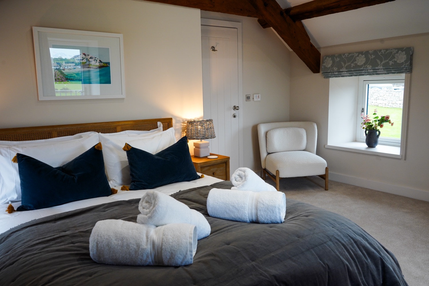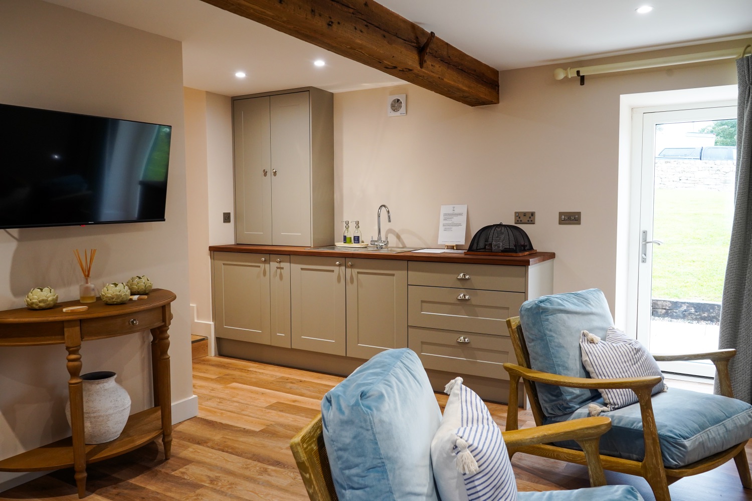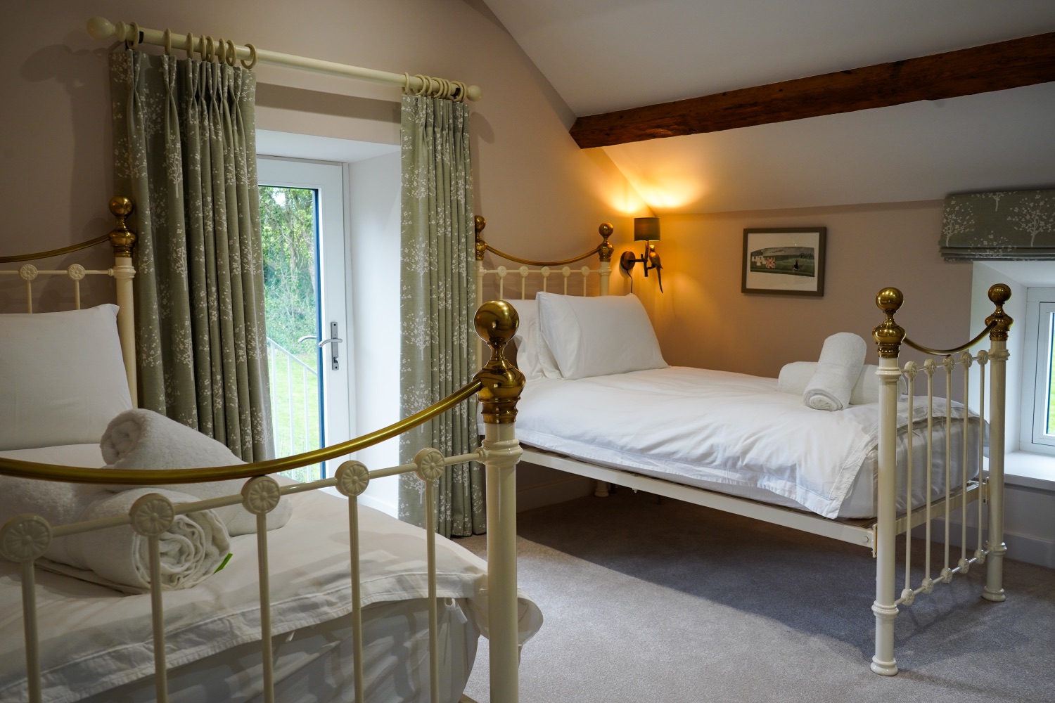 Cosy accommodation with 3 bedrooms, a light and airy sun terrace. This was the granary for the working farm, upstairs would have stored the grain and downstairs housed livestock. We decided not to make this accommodation all ensuite as it would have taken so much out of the two lovely bright rooms upstairs. We have supplied a small kitchenette, more for making a quick snack, toast, tea and coffee.