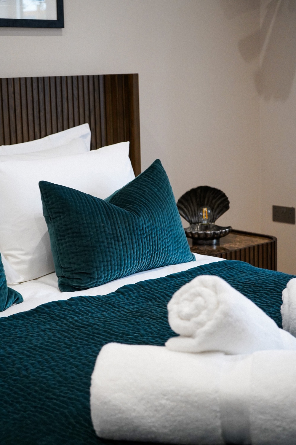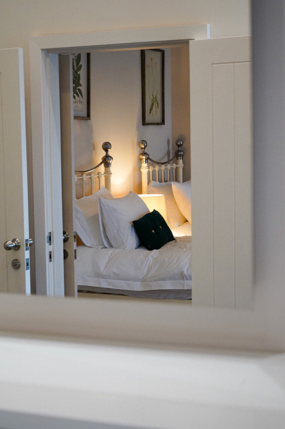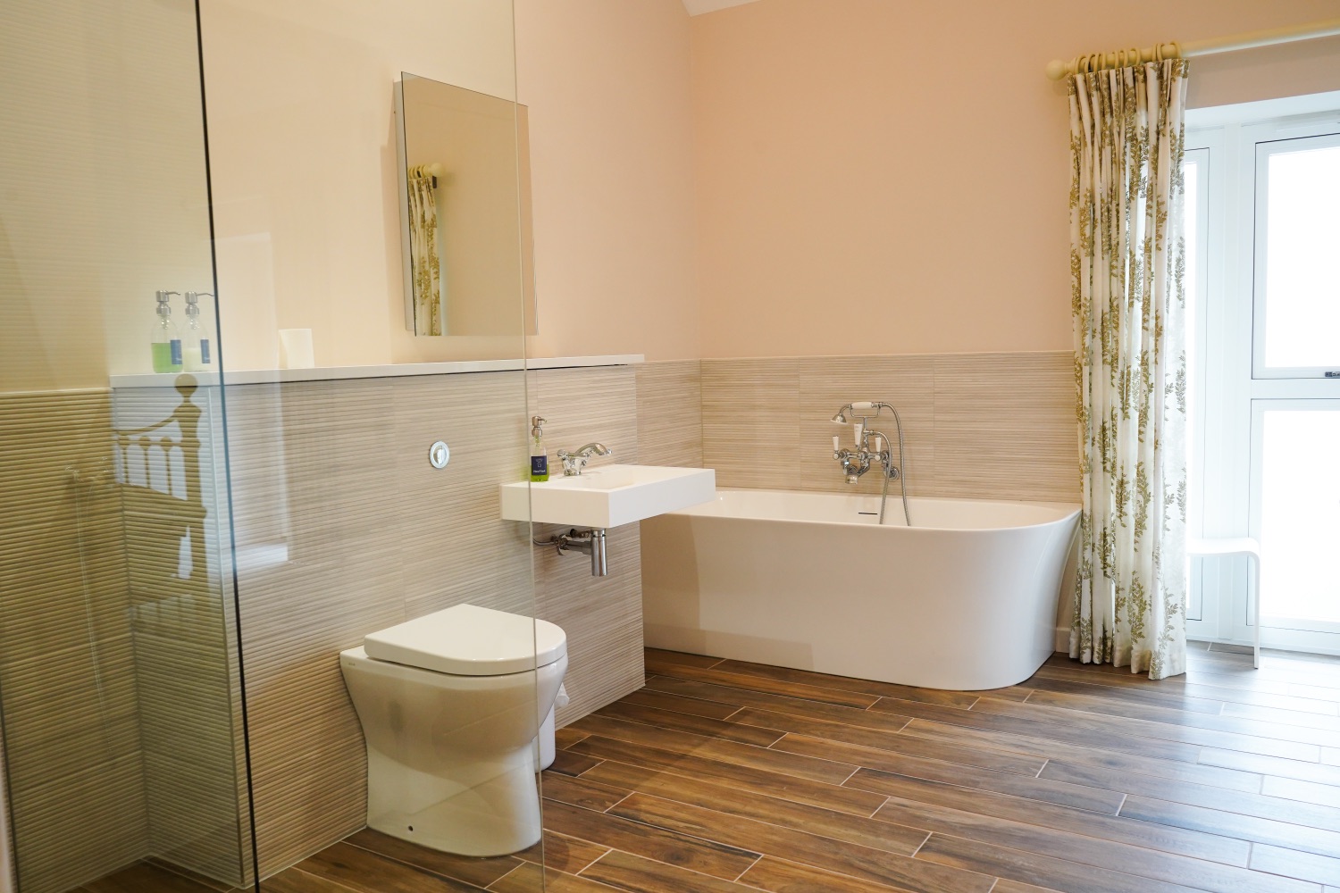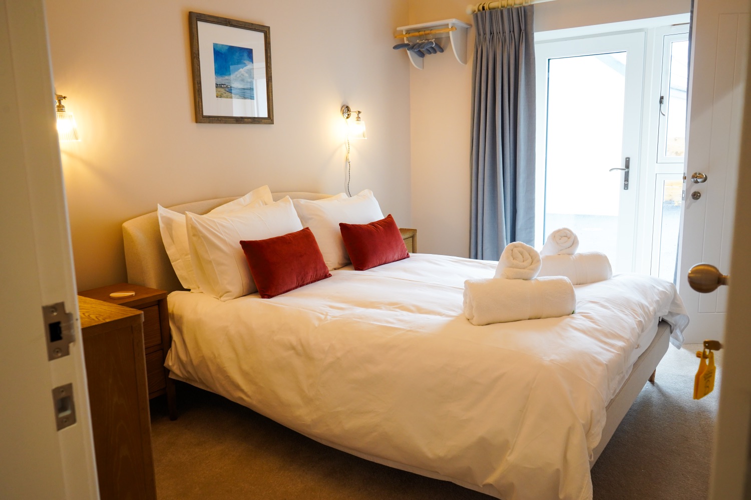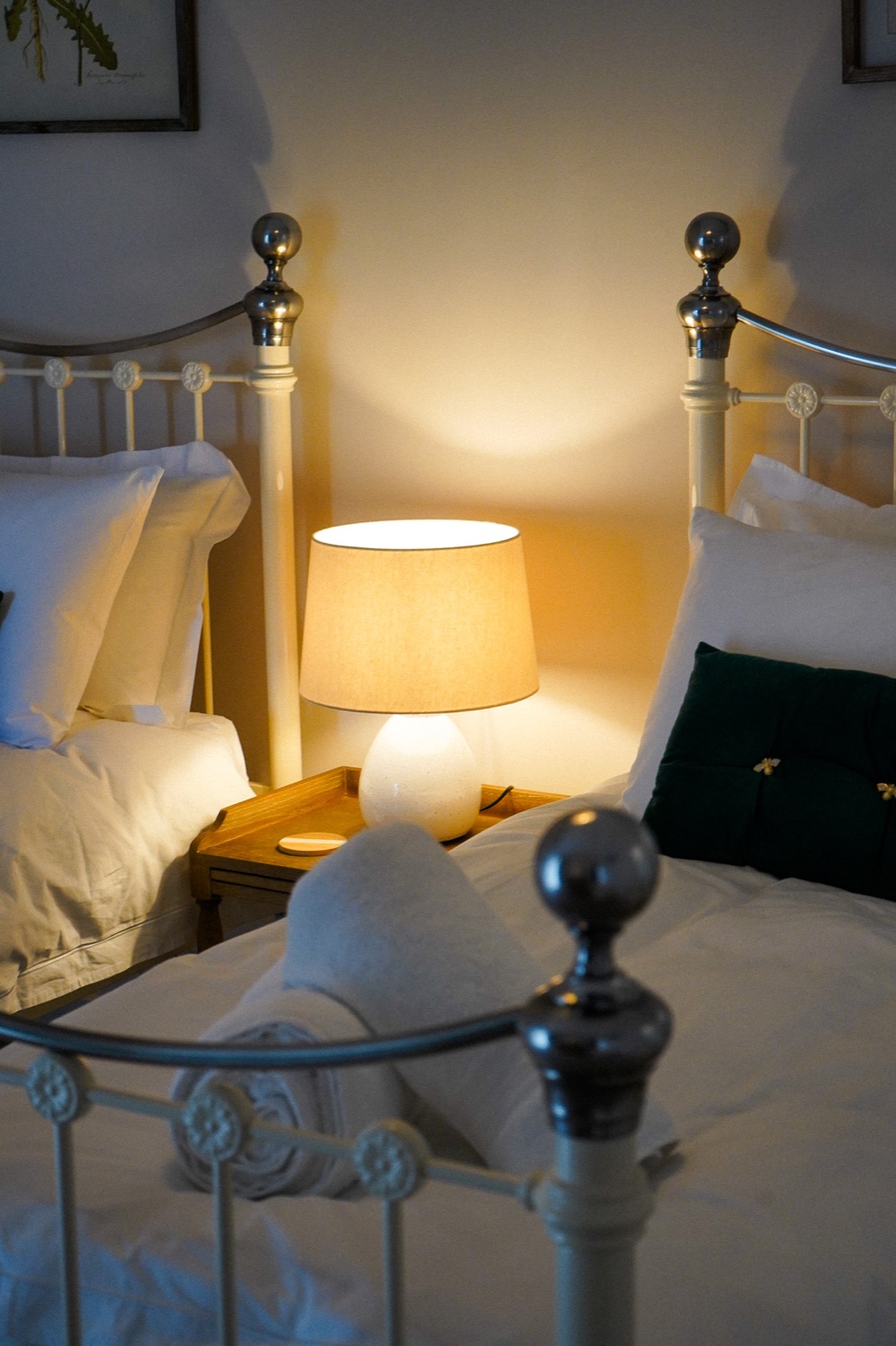 This building used to house the milking parlour for a dozen cows.  George remembers as a child the daily milk churn collection from the top of the drive.  More recently it was used for rearing calves.  This four bed ensuite accommodation with a pool table and kitchenette has become a popular alternative to the The Dressing Room.  The large terrace with a couple of benches catches the afternoon and evening sun.